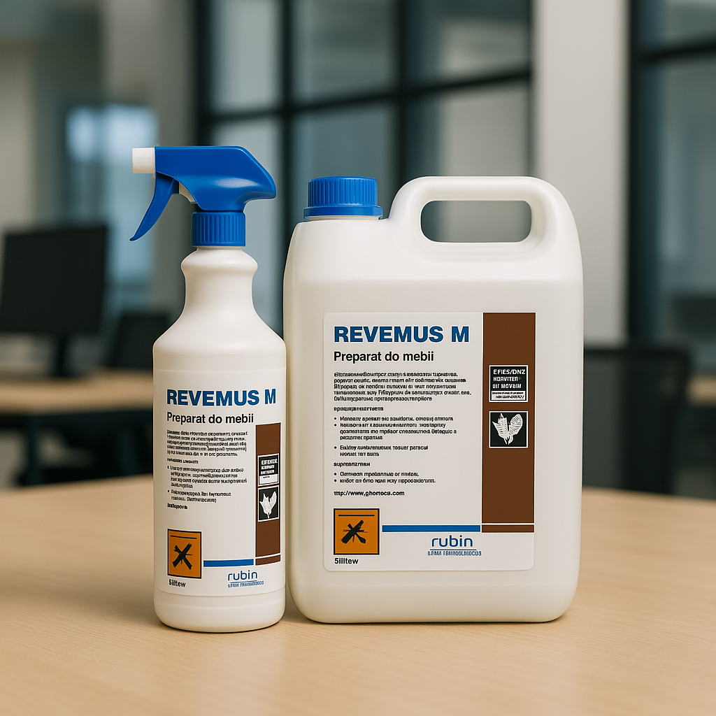 Revemus M to wysokiej jakości preparat do mebli, który skutecznie czyści, pielęgnuje i chroni powierzchnie meblowe. Dzięki innowacyjnej formule usuwa kurz, odciski palców i inne codzienne zabrudzenia, nie pozostawiając smug ani osadów.